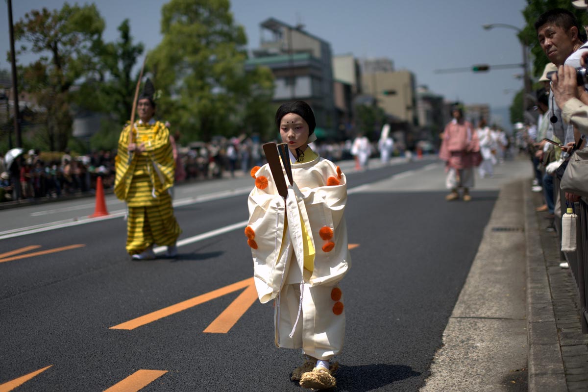 The parade starts at 10:30am at the southern gate of the Imperial Palace before heading east along Marutamachi-dori towards the Kamo River. It reaches Shimogamo Shrine around 11:40am where ceremonies are performed before the parade departs again at 2:20pm and moves northwest (crossing the Kamo River twice along the way) to arrive at Kamigamo Shrine around 3:30pm.