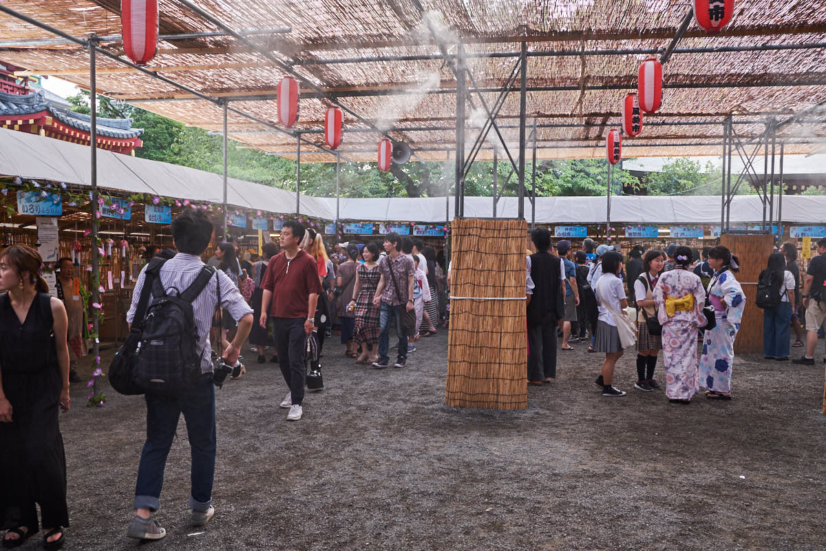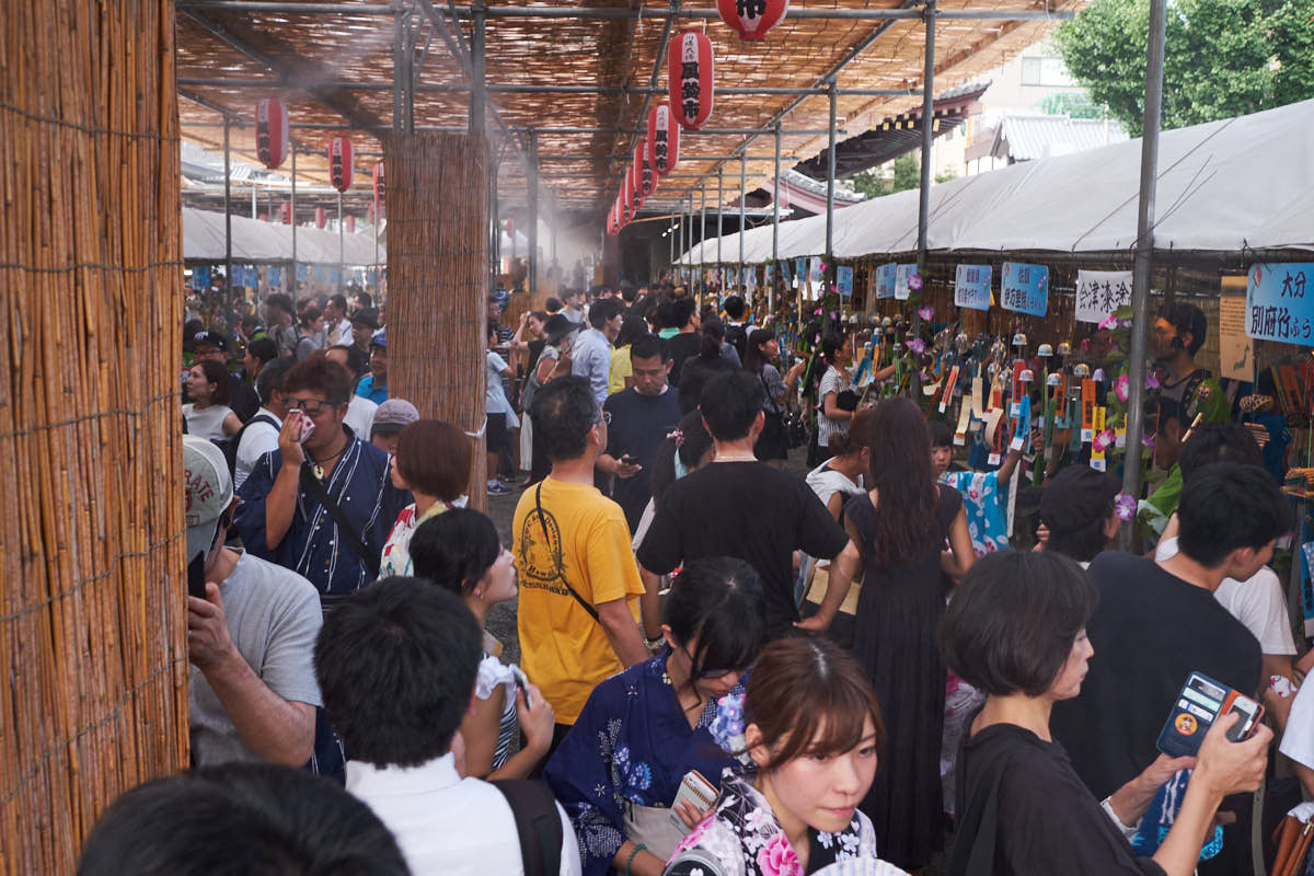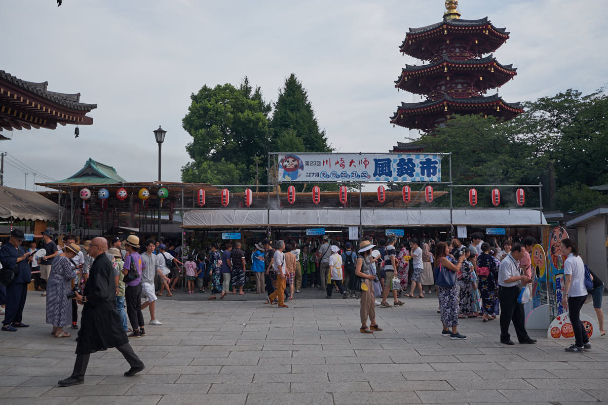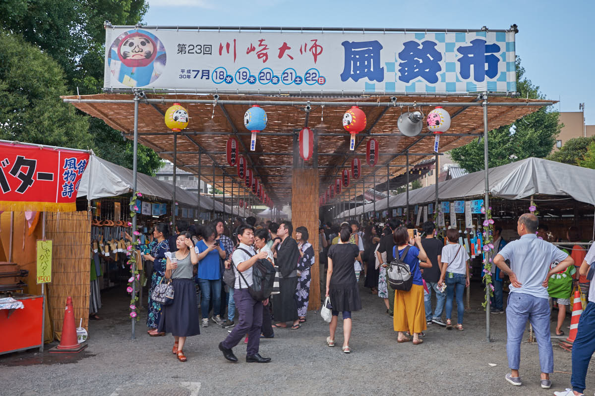 The Kawasaki Daishi Wind Chime Market (川崎大師風鈴市, Kawasaki-Daishi Fūrin-ichi) is an annual event where makers from all over the country gather for 5 days at Kawasaki Daishi—one of Tokyo’s most important shrines. While wind chimes are a common sight during the summer festivals, the market at Kawasaki Daishi is on another scale—about 30,000 of the things are on sale in all different shapes and sizes.