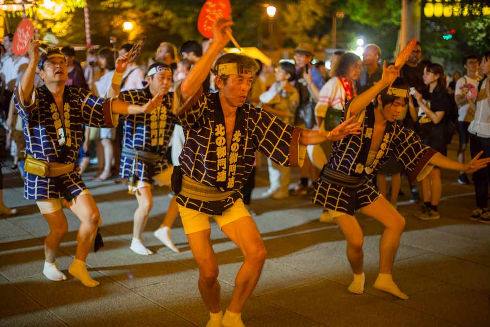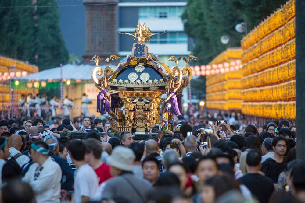 One of Tokyo’s most popular summer festivals, Mitama Matsuri (みたままつり) at Yasukuni Shrine has been held every year since 1947 and today attracts around 300,000 visitors. It is especially famous for the 30,000 lanterns hung in the grounds of the shrine, as well as the messages and paintings by celebrities from all different spheres. There isn’t the usual line of stalls selling takoyaki and other festival fare and alcohol is not allowed to be consumed on the grounds. There are, however, and handful of areas selling refreshments and snacks.