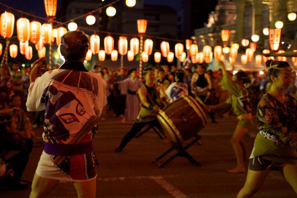 The famous temple near Tsukiji hosts a bon odori (築地本願寺納涼盆踊り大会) for four days in summer. The open grounds of the shrine provide a good arena for dancing around the yagura scaffolding, but the other big attraction is the food stalls set up by local vendors. Indeed, the temple promotes the event as “Japan’s Most Delicious Bon Odori”. Let your expectations run high! The festival runs from 7pm to 9pm each night (6pm to 8:30pm on the Saturday).