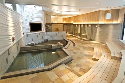 The male and female baths are identical. There are seven hot baths (including a jet bath and carbonated bath), a dry sauna, and a hot stone spa (no extra charge). Each bathing area is split into two rooms with one set up as a sort of television-viewing area, and the other quieter without any distractions.