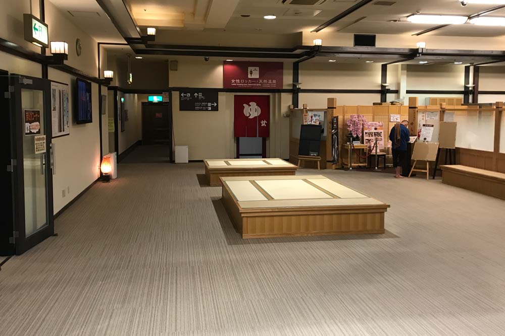 Heiwajima Onsen must be one of the biggest public baths in Tokyo. There’s a floor map on the wall as you walk in which shows you clearly where all the different rooms and sections are located: relaxation room, smoking room, massage room, restaurant, manga room, relaxation room, napping room, premium relaxation room, and so on. The reason why it has expanded so much is simple: the onsen is a 15-minute drive from Haneda Airport and offers guests with a late night arrival or early morning departure a package whereby you can sleep at the facilities (essentially use the relaxation rooms as a dormitory) for a modest ¥3,500. That includes use of the bathing area, a shuttle bus to/from the airport, and breakfast, depending on the package. I’ve used it before for an early morning (7:30am) flight out of Haneda and it really does make sense versus getting out of bed at some ungodly hour to pay double that amount for a taxi across Tokyo.