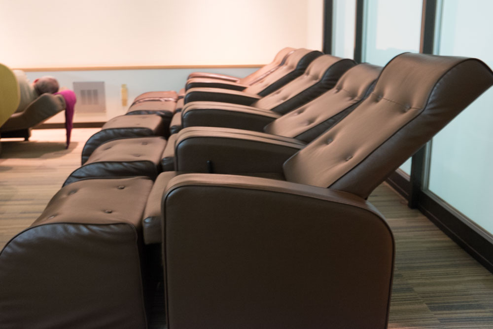 The chairs in the relaxation room fold almost flat but you can also sleep in the napping room on thin futon pillows or in the “Multi-Purpose Room” where they lay out foam futons with built in headrests. Blankets are free and available at reception. And if you’re still worried that you won’t get a good night’s sleep, they offer access to the “Premium Lounge” for an additional ¥1,500 where the chairs fold fully flat (think first class plane seats) and access is restricted. Note these are onsen relaxation rooms and so mens and women are mixed in the same room. There is a separate female section in the main relaxation room and a female-only premium lounge. Luggage can be stored at reception and there are barcode lockers for small, valuable items. Why stay at a dormitory for the same price?