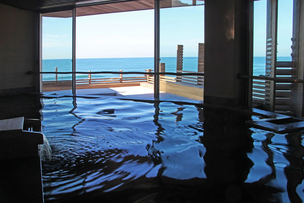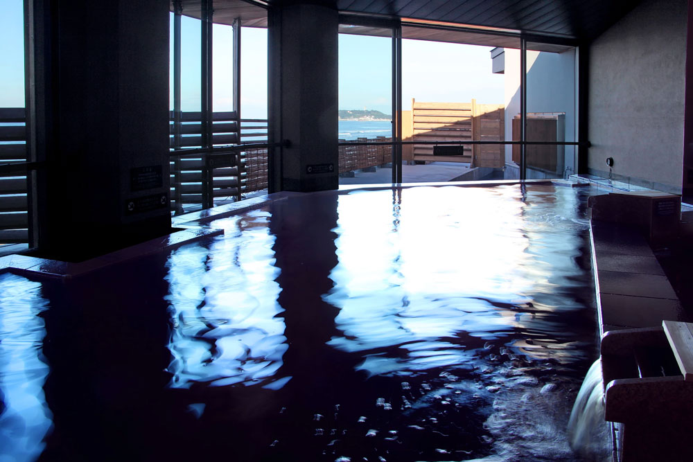 Inamuragasaki Onsen is a natural onsen on the coast near Kamakura that offers views of the waterfront as well as a distant Mount Fuji. The onsen underwent a renovation in September 2017, and the new design is more modern, taking advantage of its surroundings. The two baths are called “Oshima-noyu” and “Fujimi-noyu”, but it is really only from the latter that you can enjoy the view of Mount Fuji from the bathtubs (in Oshima-noyu you need to stand to catch a glimpse because the view is blocked by the wooden fencing that separates the male and female baths). Fortunately, these baths are switched between every week so there’s a 50/50 chance you’ll get to bathe in Fujimi-noyu.