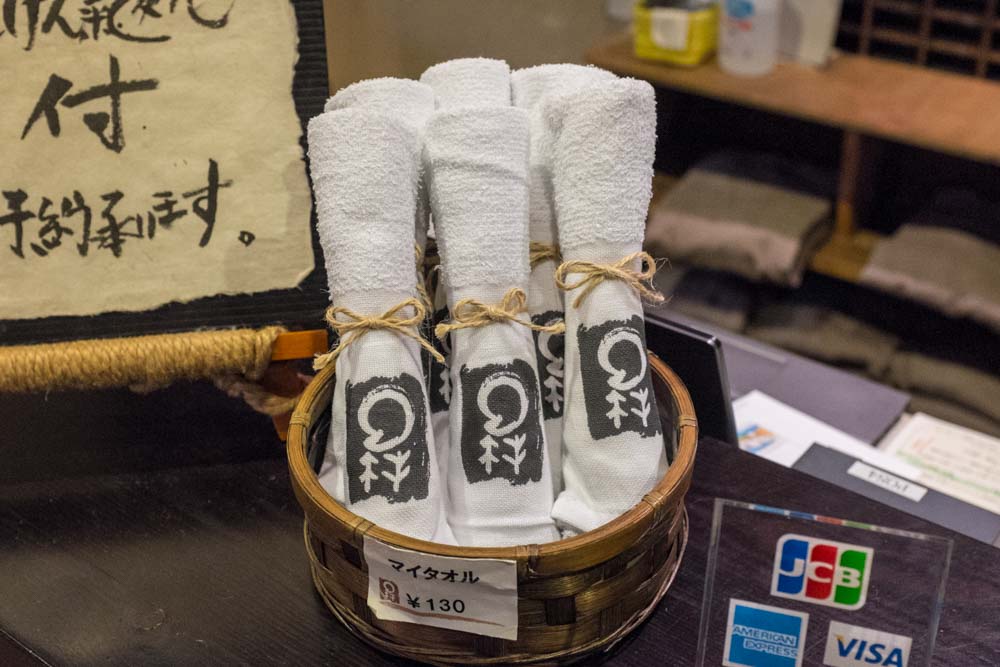 At some day onsen you will pay at the reception; others may have a vending machine where you purchase tickets (this will almost definitely be in Japanese only, so ask a member of staff if you’re not sure). Here you pay your nyūyokukin (入浴金)—entrance fee to the baths. If you see many different options on the price list or buttons on the vending machine, these will be for additional services like the hot stone spa or massage—or, in some cases, towels. Most of more expensive day onsen include a small towel as part of the entrance fee, but the the more local onsen will expect you to bring your own. If you don’t have one, you’ll be able to purchase or rent one for a couple of hundred yen. At some day onsen you will also hand over your shoe locker key for staff to keep until you want to go home. In exchange, you’ll be given a locker key for the changing rooms.