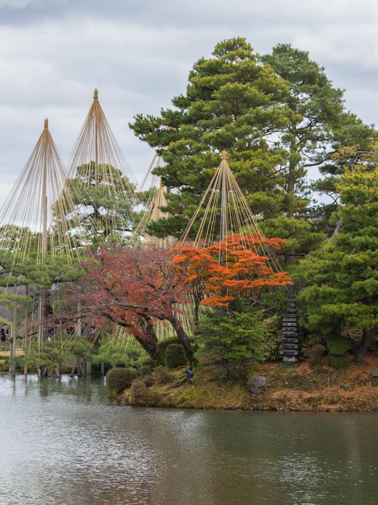 Kenrokuen (兼六園, kenroku-en) in Kanazawa is regarded as one of Japan’s three most beautiful gardens along with Kairaku-en in Mito and Koraku-en in Okayama. It was founded and developed over the years by the feudal lords (daimyo) of Kaga (the current southern part of Ishikawa, the prefecture of which Kanazawa is the capital) between from the early 17th century to the mid 18th century. The garden was first opened to the public in May 1874 and today is a designated National Site of Special Scenic Beauty.