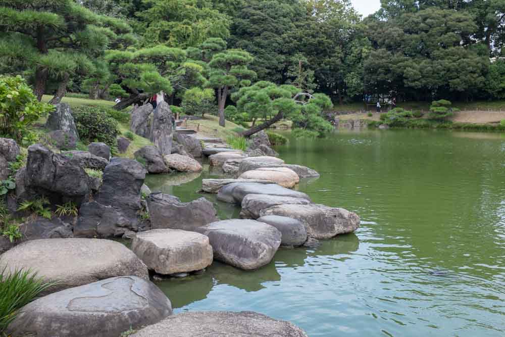It is well known among visitors for the large stepping stones and stone bridges, as well as the ryotei that stands on the other side of the pond when you first enter the garden. The ryotei is a tea ceremony house that was built in 1909 by Iwasaki to entertain Field Marshal Kitchener on his visit to Japan. Unfortunately, entrance to the ryotei remains by appointment only.