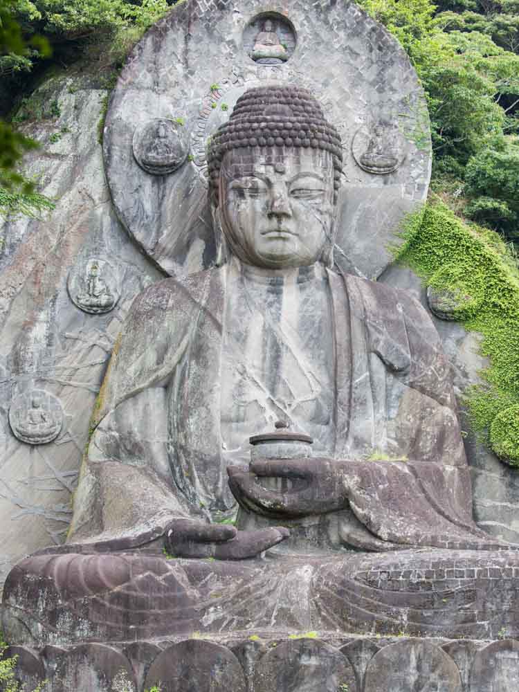 The mountain temple, Nihon-ji, has a history dating back 1,300 years when it was founded by imperial decree under Emperor Shomuu and Empress Gyoki, but today it is most famous as the site of Japan’s largest stone-carved Buddha (daibutsu), a mammoth statue completed in 1783 that stands at just over 31 meters and gazes out onto the ocean to the west. Earthquakes the passing of time tool their toll on the structure, and major renovation works were carried out in 1966.