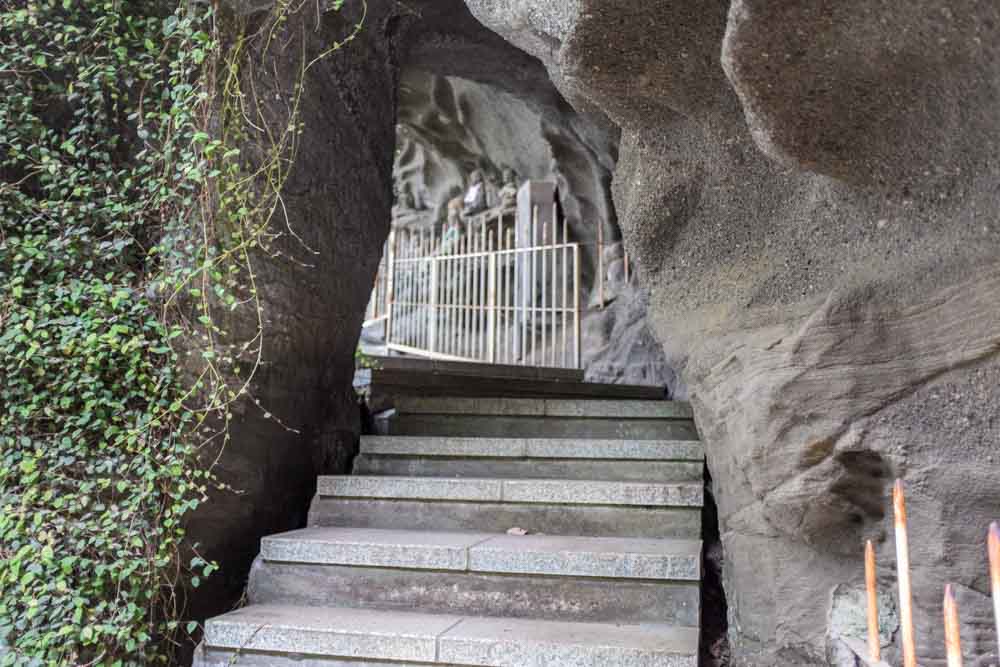 But while the daibutsu is no doubt the most imposing statue, the mountain slopes are mottled with miniature stone carvings of disciples of the Buddha, referred to as the 1,500 stone Tokai Arhats. These statues are hidden in grottoes, caves, and coves carved into the mountain face, and they come in all different shapes and forms. Today, only about 500 still remain as many were destroyed in the early Meiji era which witnessed a promotion of Shinto, Japan’s indigenous, religion at the expense of Buddhism. Those that do remain are on the whole well preserved or missing only a fragment of their original form, carved by the same sculptor Jingoro Eirei Ono and his 27 apprentices who created the daibutsu.