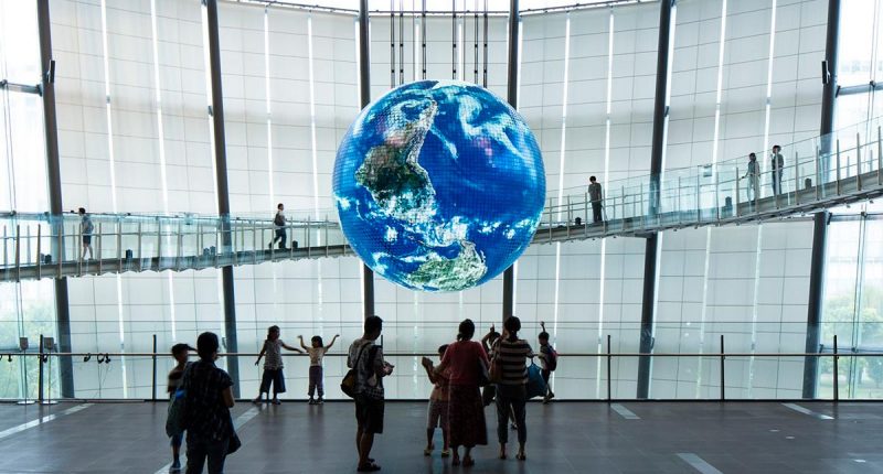 The National Museum of Emerging Science and Innovation also known as Miraikan (mirai means future and kan is used as a suffix for buildings), focuses on the role technology plays—and will play—in society. There are three permanent exhibitions where visitors can communicate with robots, view earth from space, and interact with the exhibits.