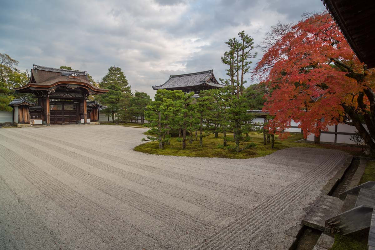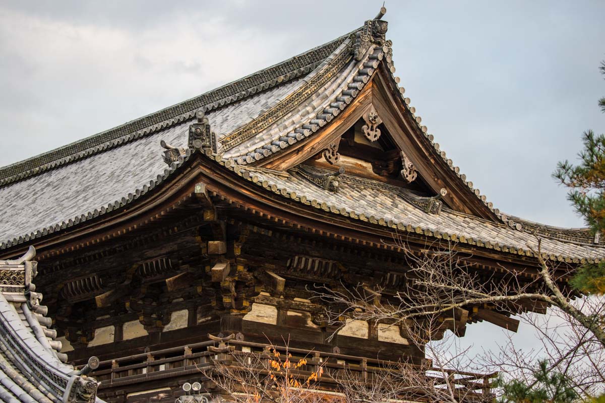 The grounds of Ninnaji are especially large and include a wide gravel path from the Niomon front gate up to the main hall. This is at an incline and provides some great views of the temple and Kyoto from the steps of the middle gate. The Goten on the west of the grounds are another highlight for visitors: they are the former residence of the head priest of Ninnaji, replete with fusuma sliding doors and Japanese gardens with water and rock features. Visitors can wander the extensive area of the Goten but are requested to remove shoes before entering the building.