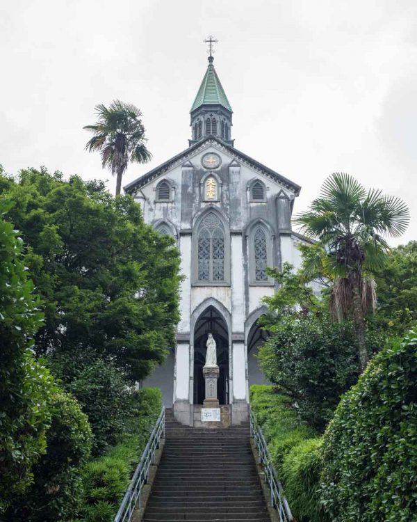 Oura Church (大浦天主堂, Ōura Tenshudō) is the oldest church in Japan. It was built in 1864 in memory of the 26 martyrs who were crucified on Nishizaka Hill in 1597 on the orders of Hideyoshi Toyotomi, and is a designated National Treasure of Japan, as well as a recognized Minor Basilica. It’s official name is “Oura Catholic Church, The Church of 26 Martyrs” and bronze plaque build in memory of the martyrs in the grounds of the church was positioned to directly face the monument that stands at the site of the execution.