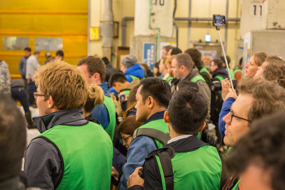 At present public access to the wholesale market is banned until 9am (the majority of business is done between 5:00–8:00am) and access to the auction is restricted to 120 people per day. Registration is free and starts at 5am on a first-come-first-served basis. The 120 successful applicants are divided into two groups of 60, which are admitted to the viewing area of the auction for 25-minutes each (5:25–5:50 and 5:50–6:15). In reality, people will start arriving from 3am onwards and if you want to be guaranteed a spot on the list then you should be aiming to get there by 3:45am at the latest.