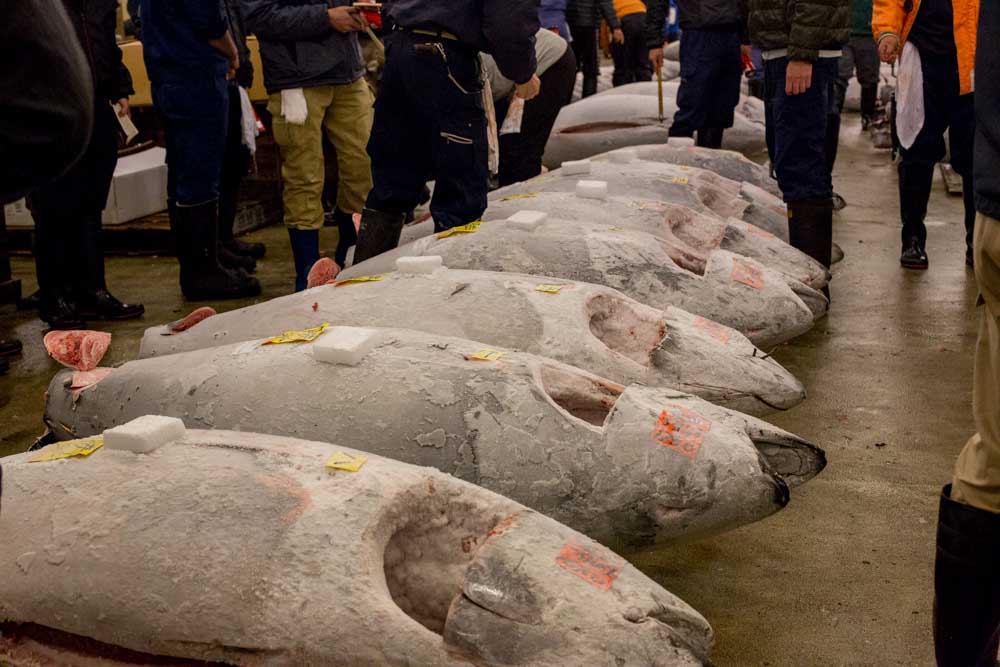 Frozen tuna at the early morning auction